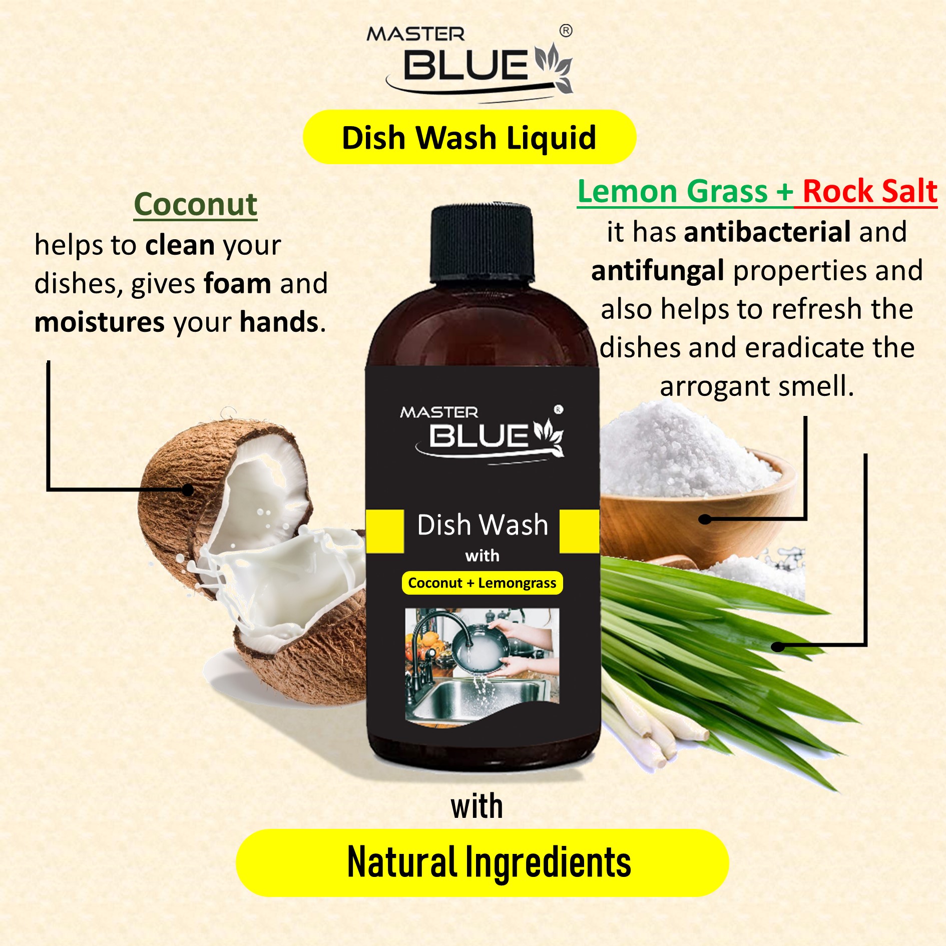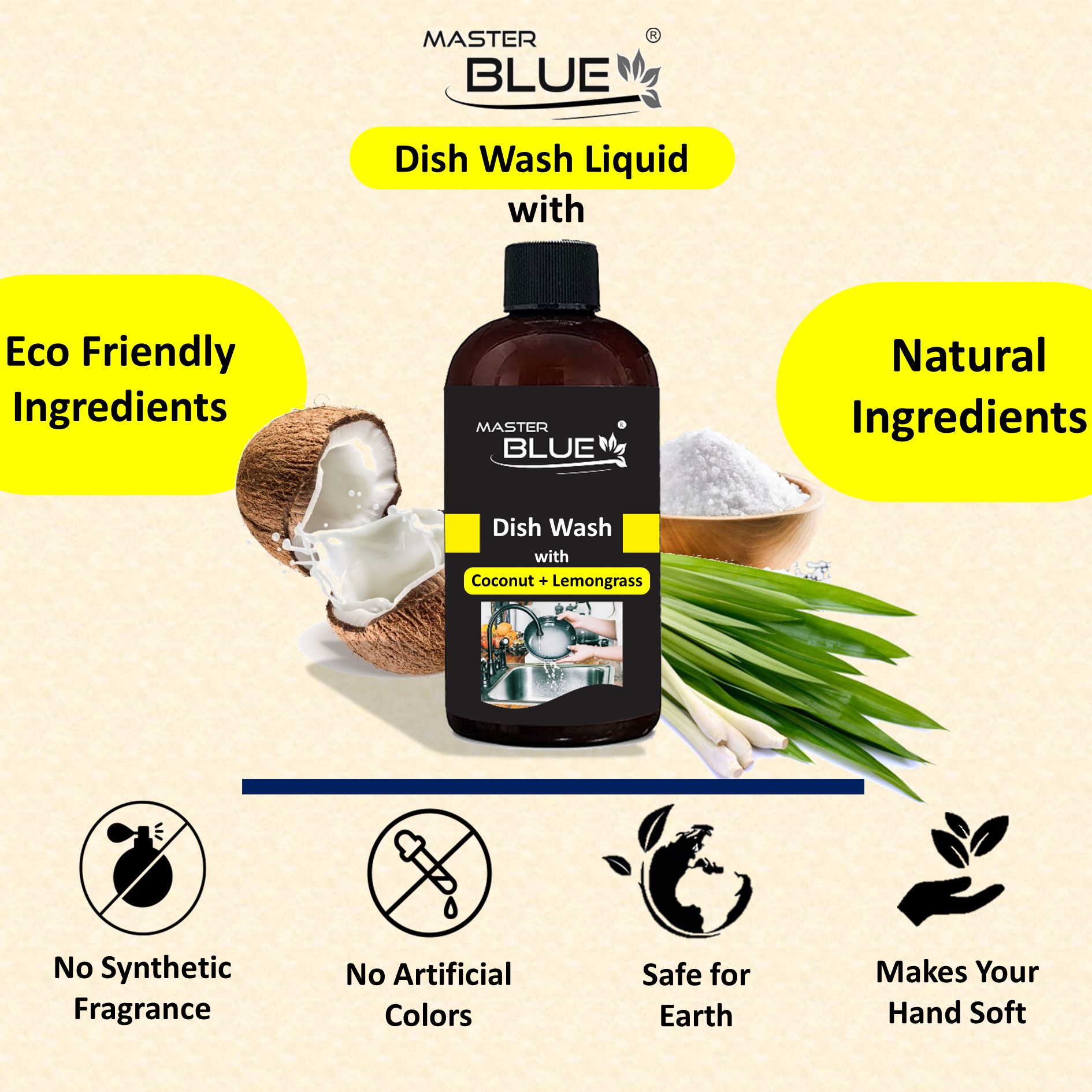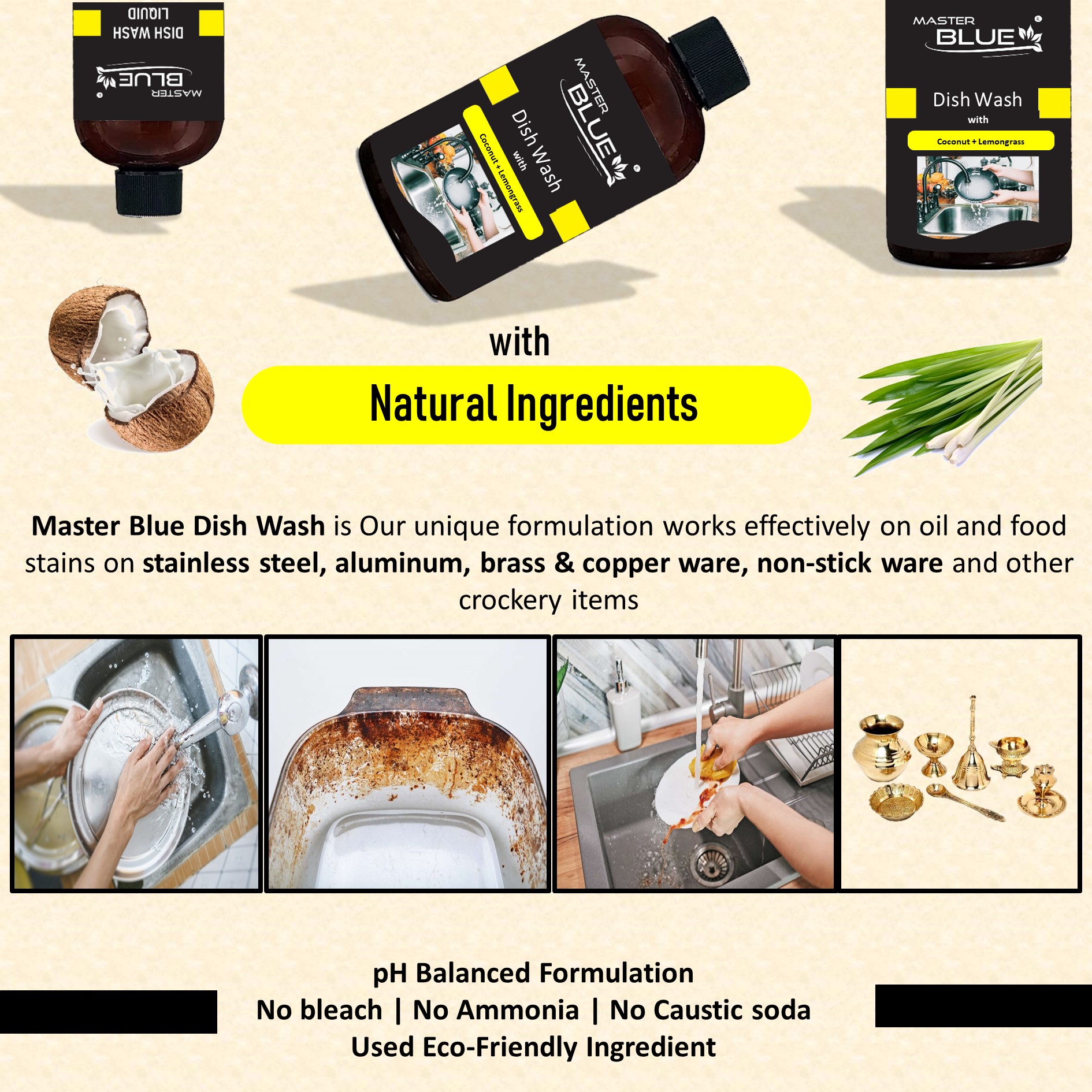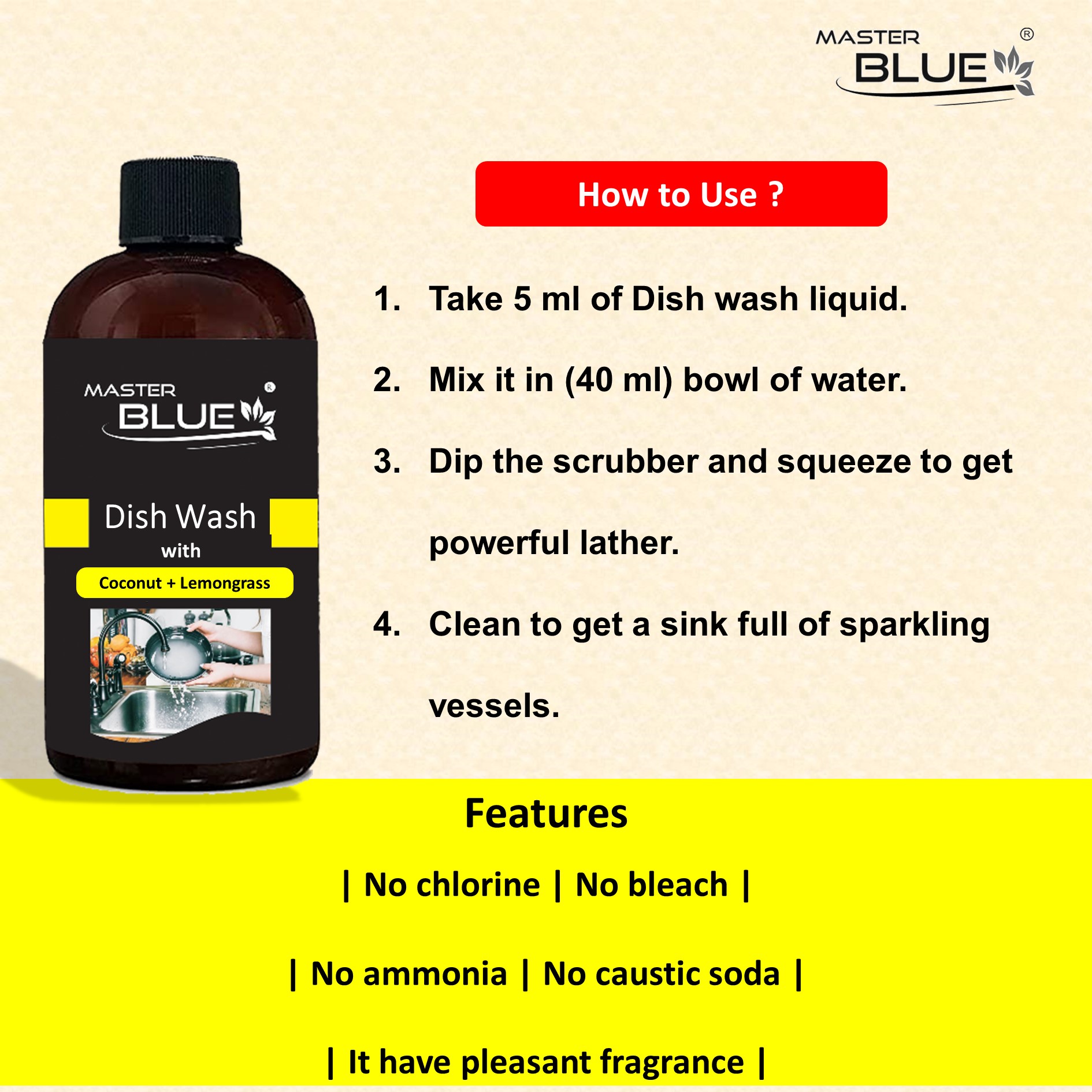 Master Blue® Dish Wash is designed with Natural ingredients and Ecofriendly Surfactant. It helps to clean your dishes and also makes your hand soft. it also a pH balanced product.