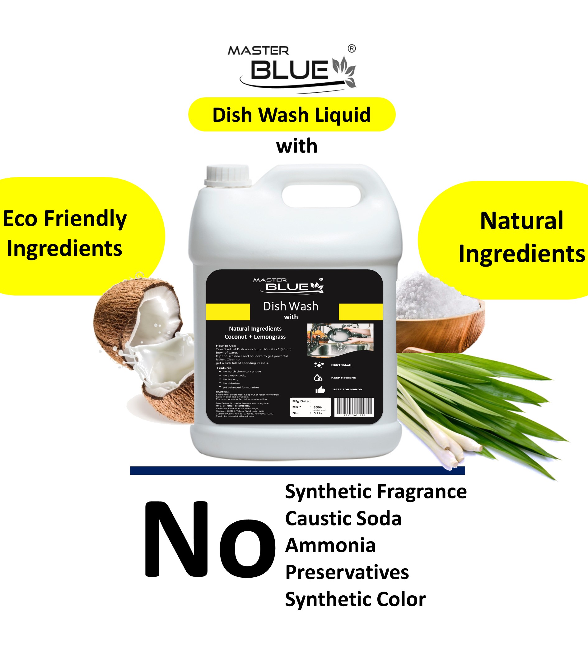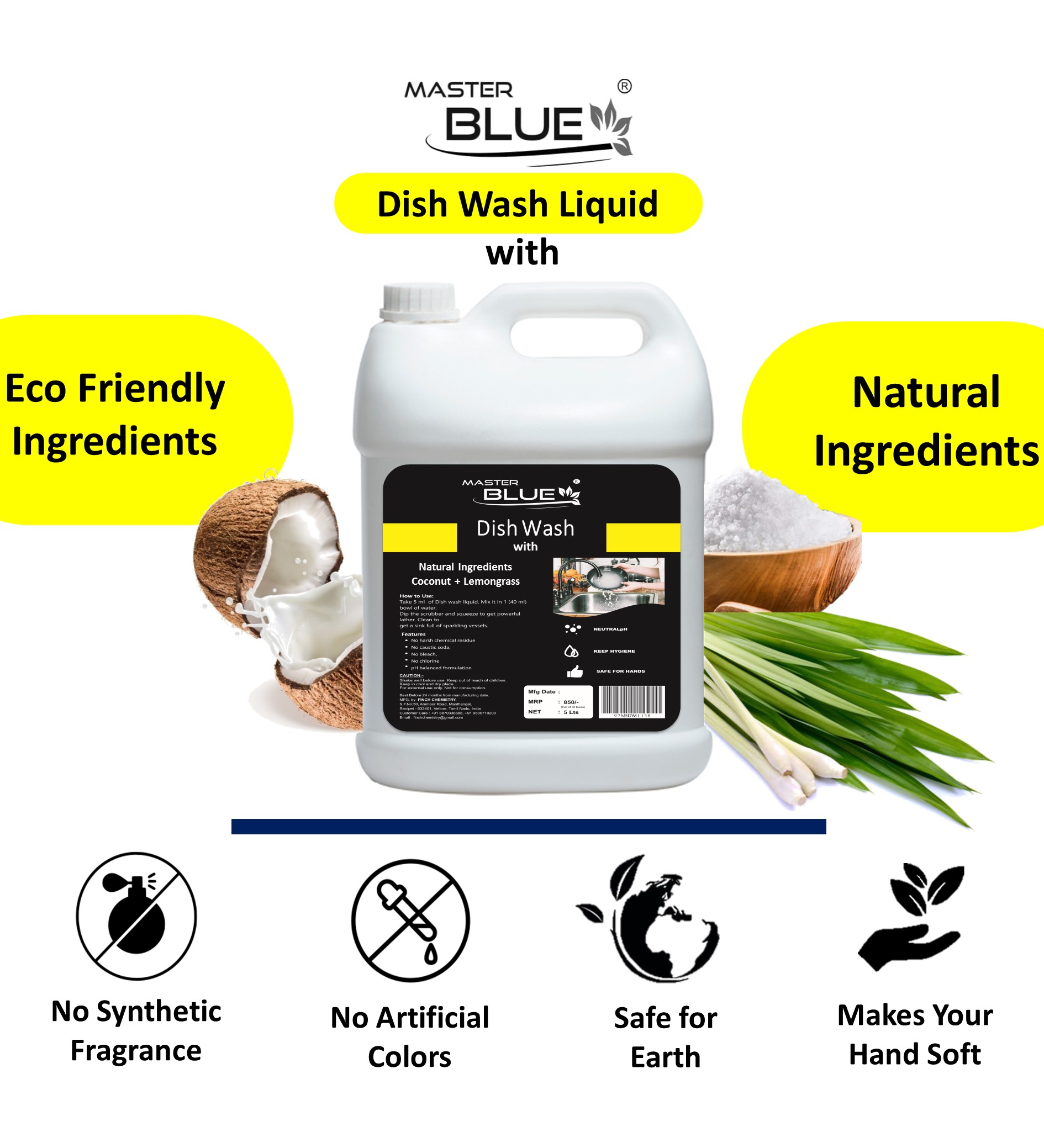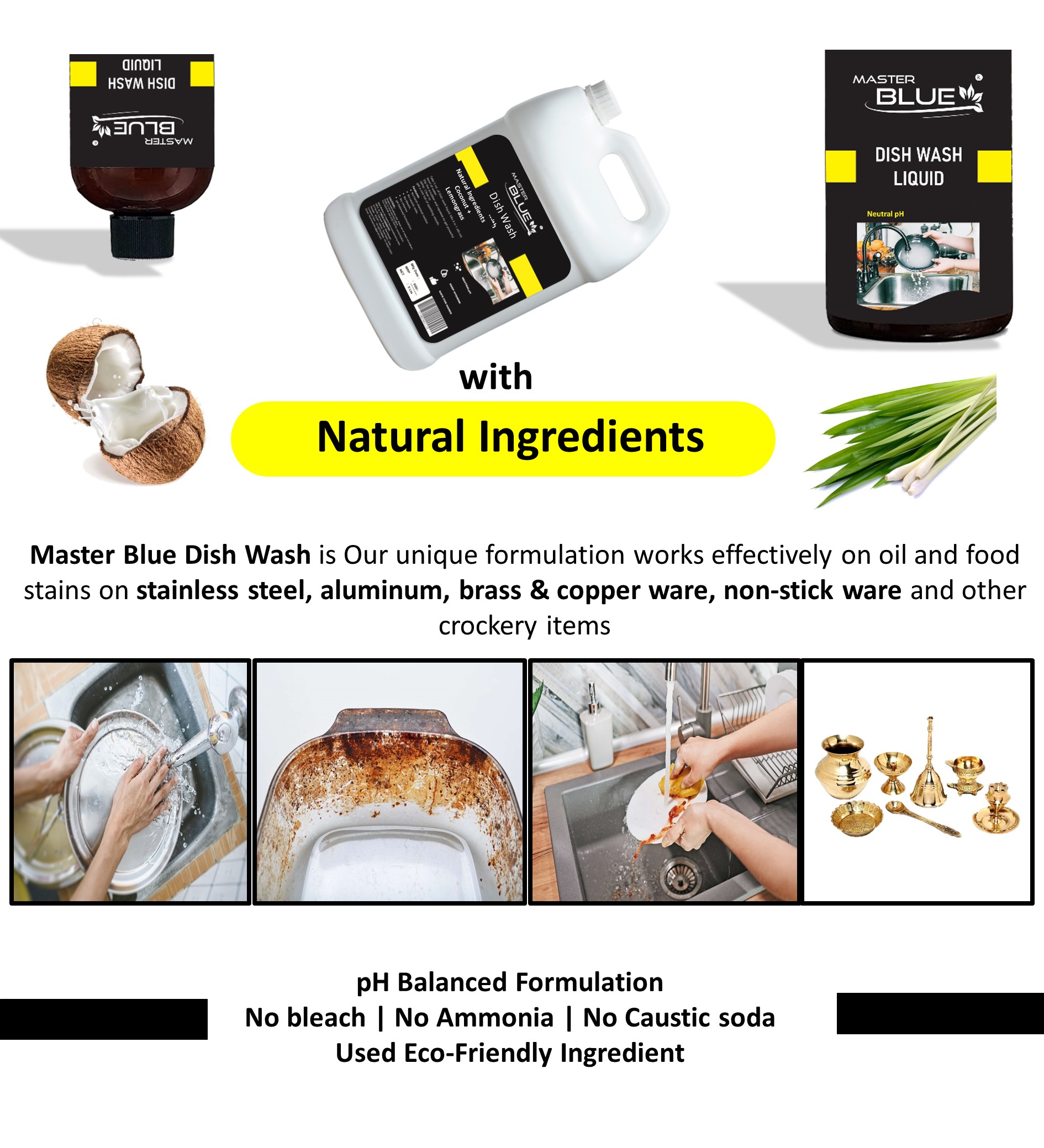 Master Blue® Dish Wash is designed with Natural ingredients and Ecofriendly Surfactant. It helps to clean your dishes and also makes your hand soft. it also a pH balanced product.