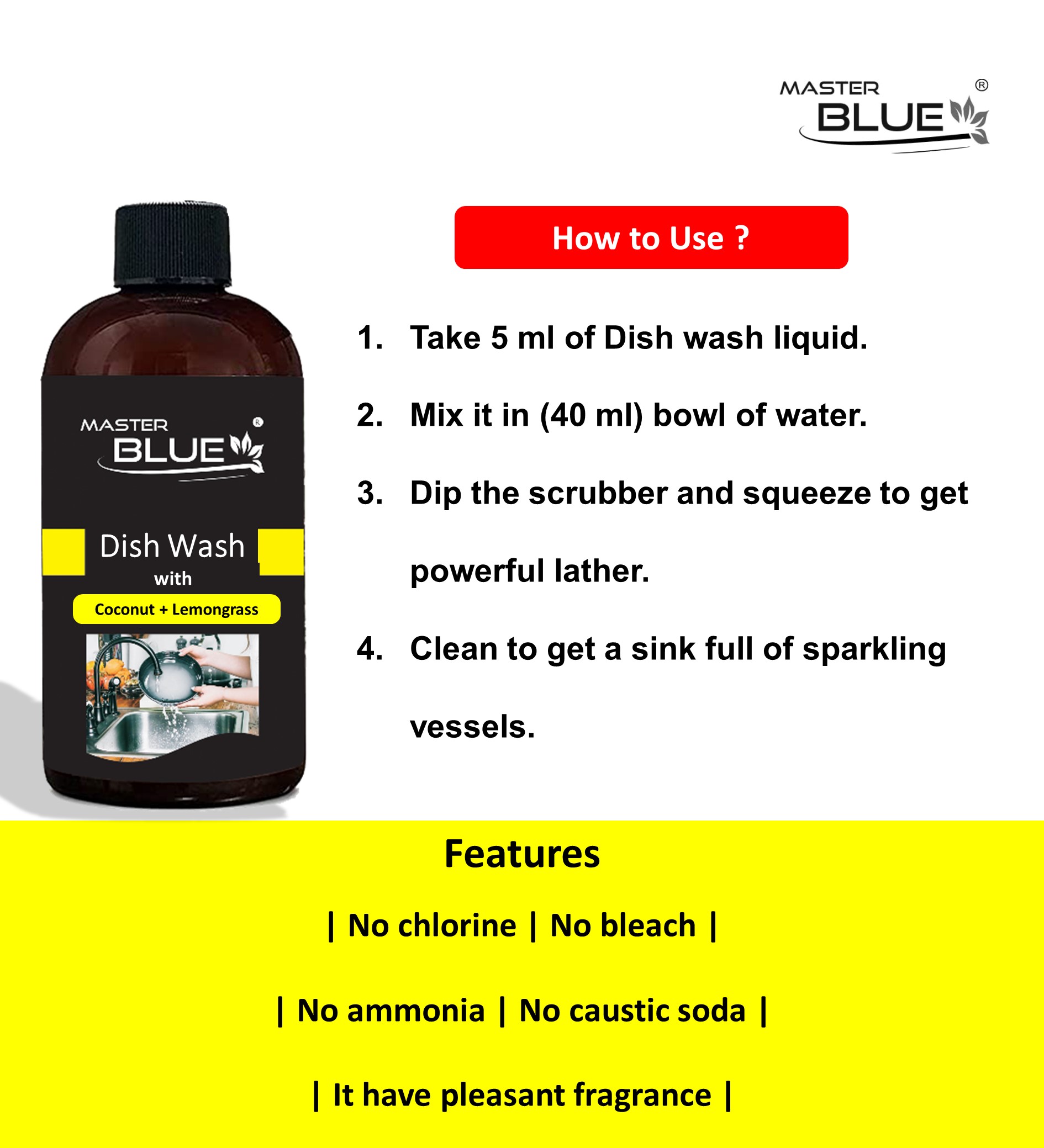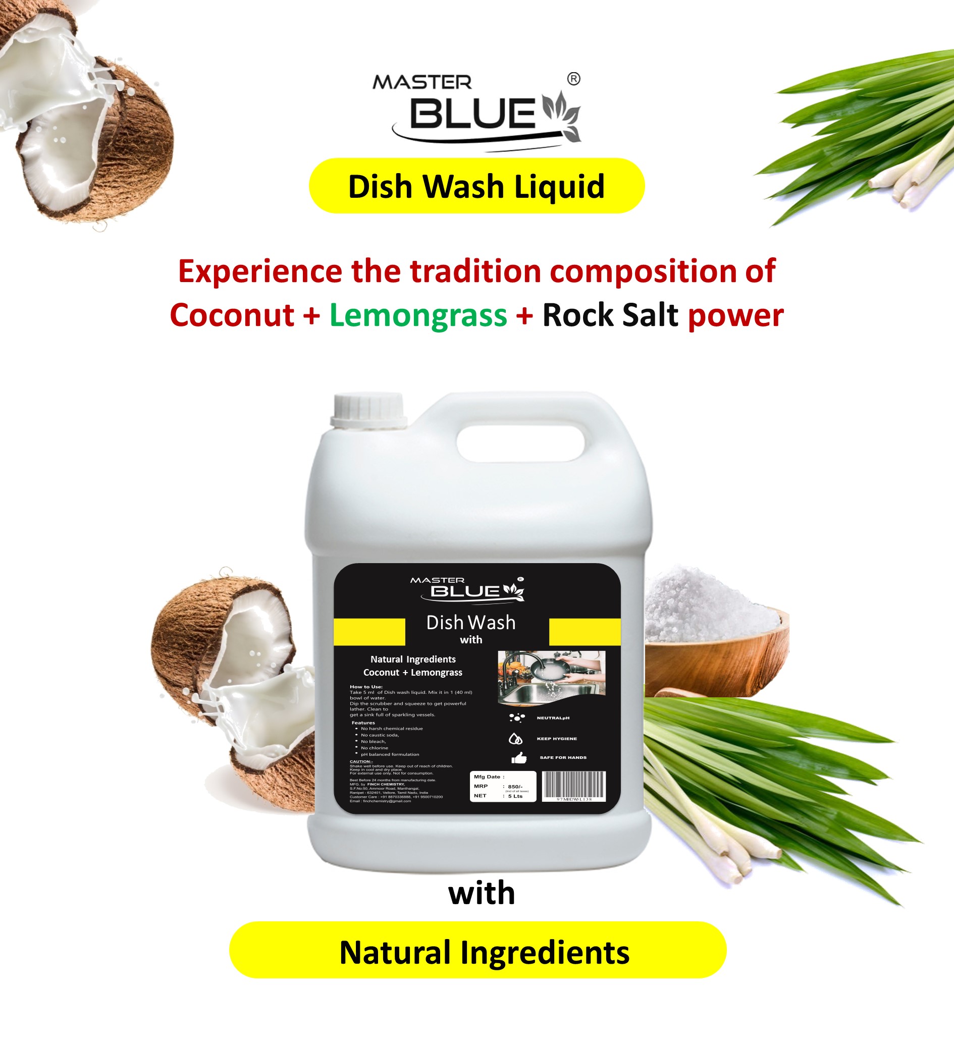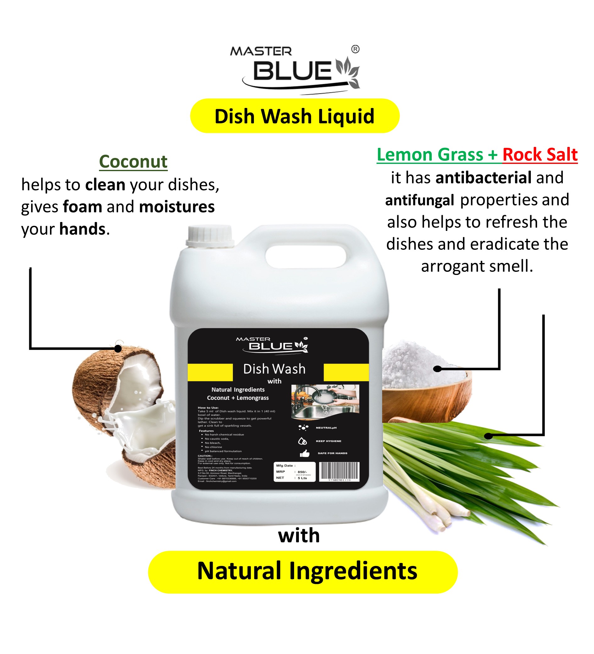 Master Blue® Dish Wash is designed with Natural ingredients and Ecofriendly Surfactant. It helps to clean your dishes and also makes your hand soft. it also a pH balanced product.