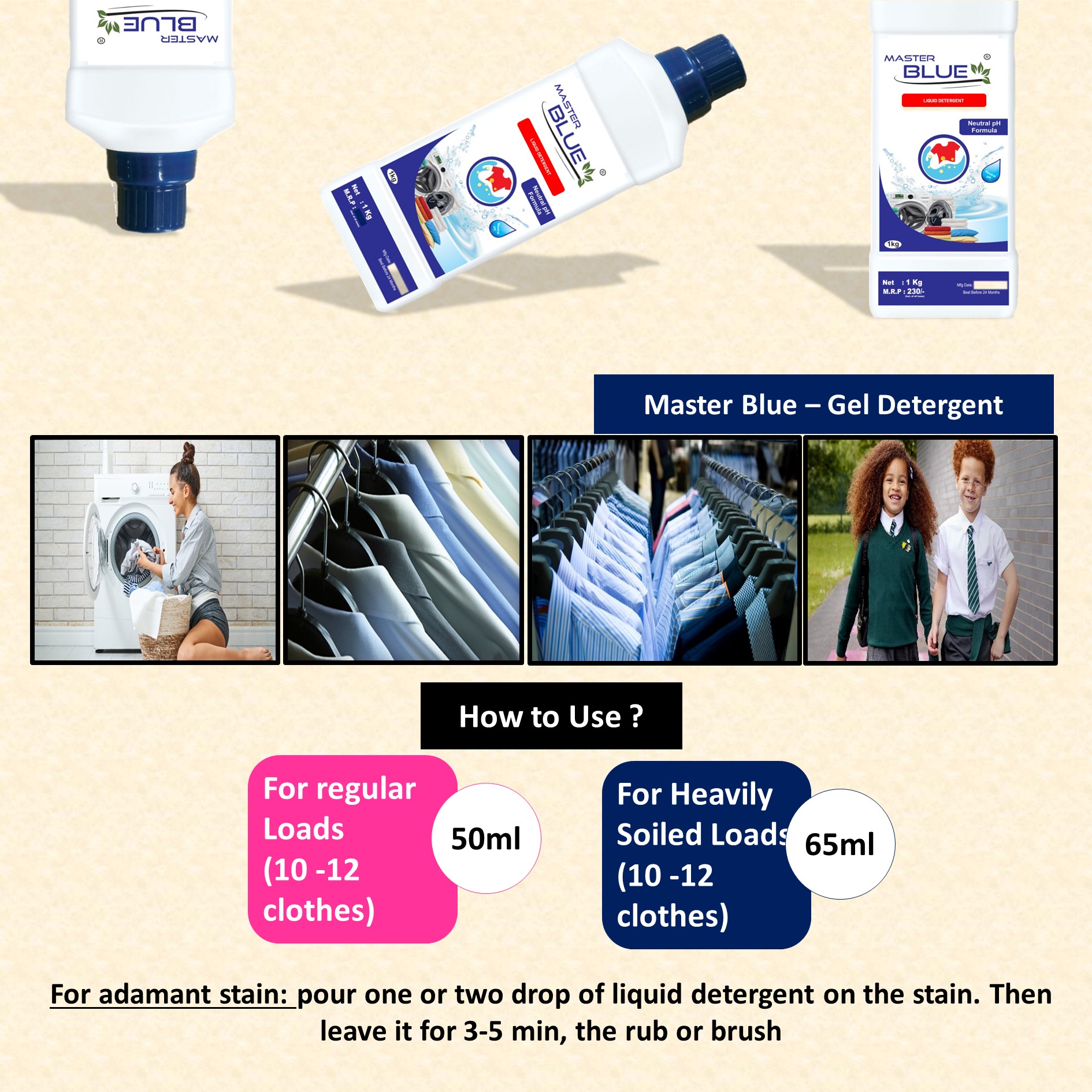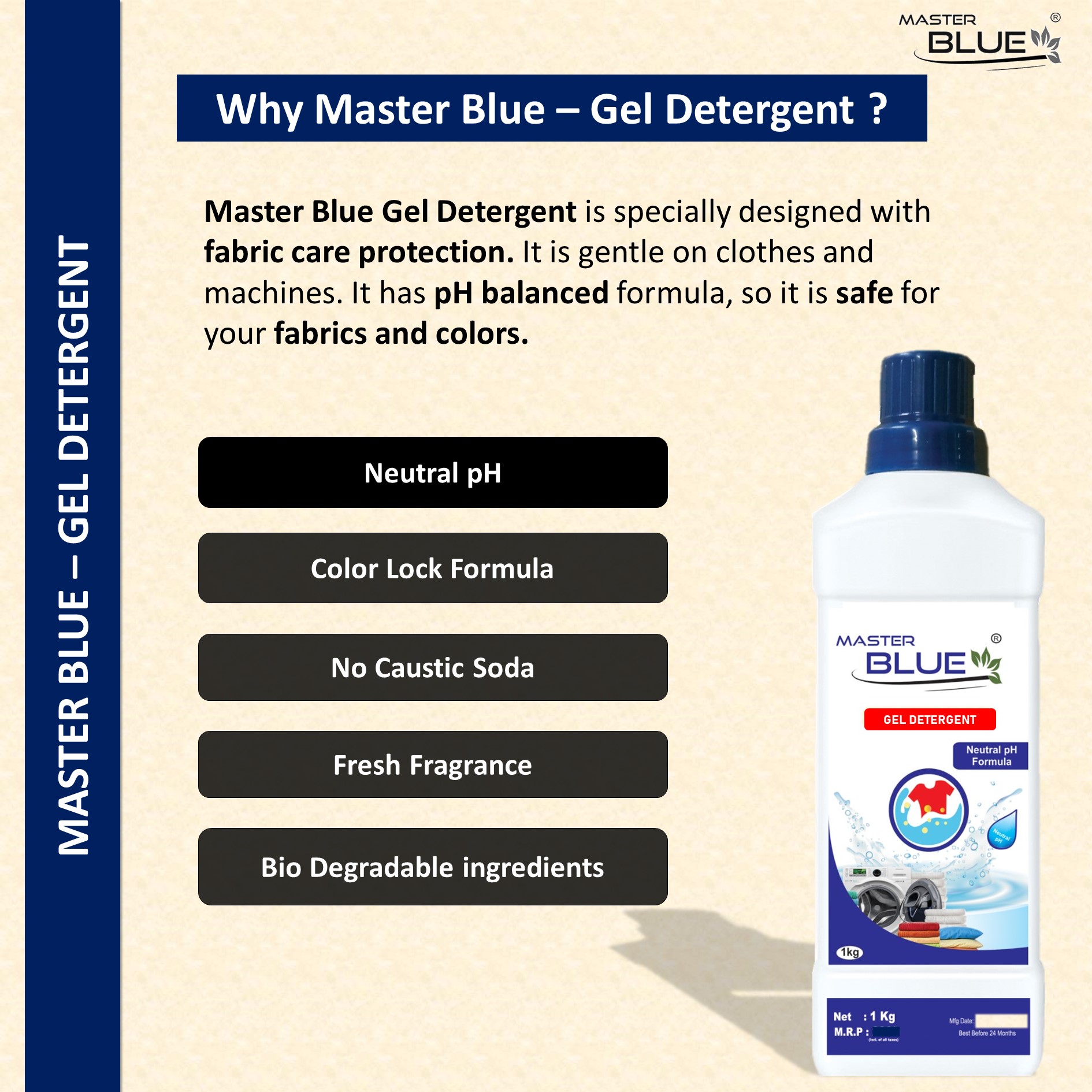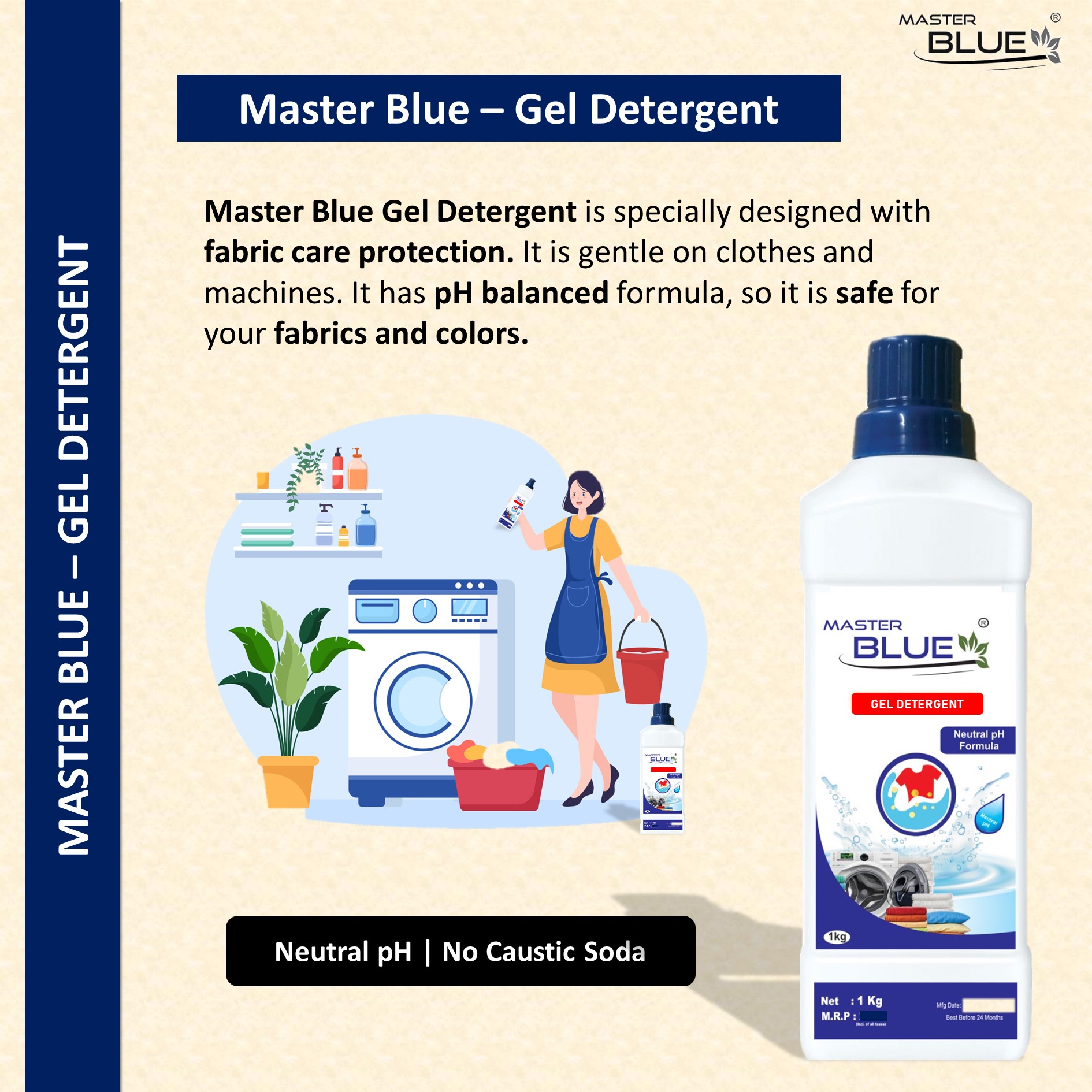 Master Blue® – Gel Laundry Detergent is specially designed with fabric care protection. It is gentle on clothes and machines. It has pH balanced formula, so it is safe for your fabrics and colors